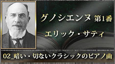 楽譜には拍子記号も小節線もないサティが作曲した曲。どんよりと暗くゆっくりとした雰囲気を醸し出す一曲。